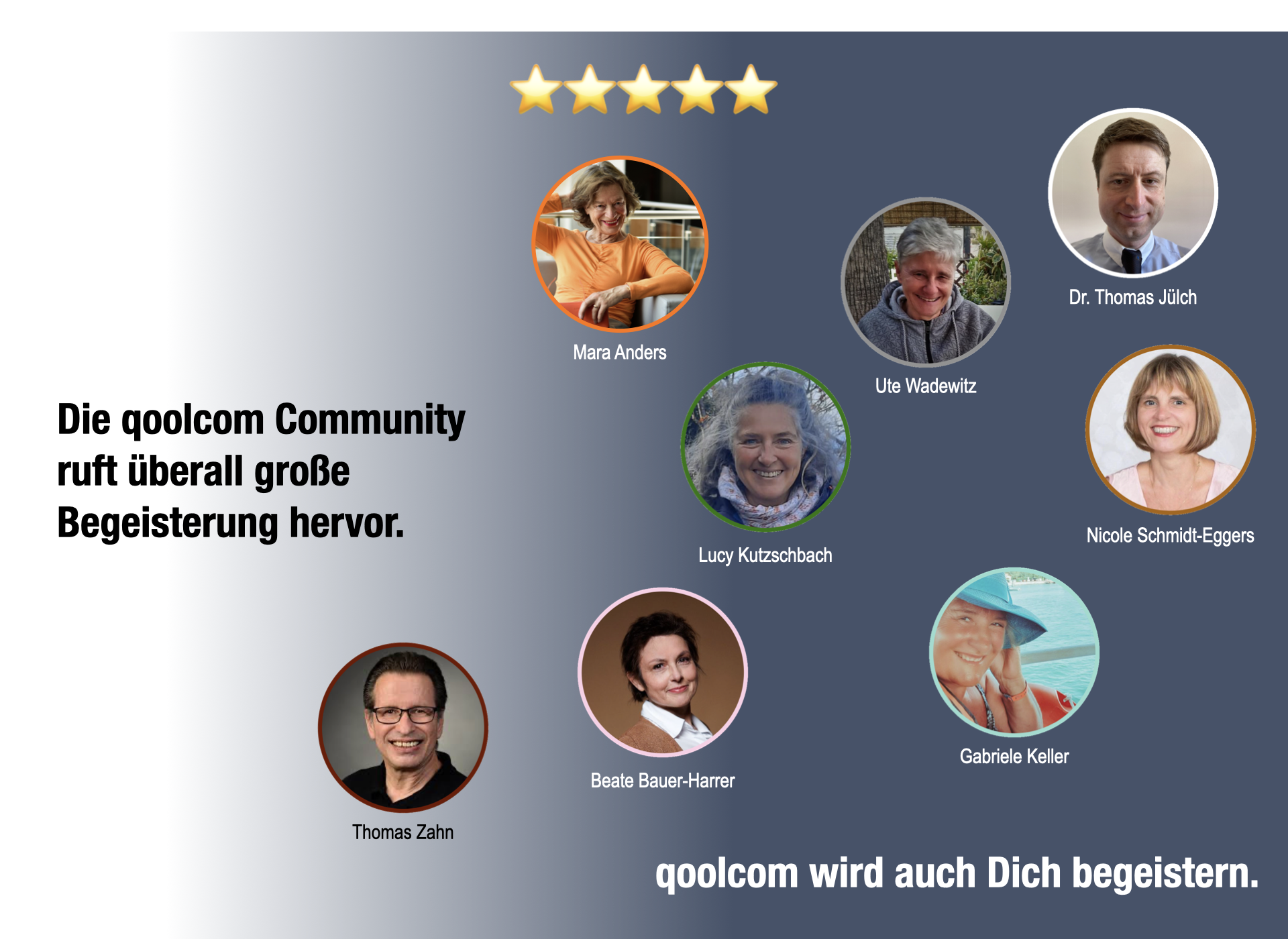 qoolcom ist eine einzigartige Community. Ohne Kosten. Nutze das qoolcom-System, um Deine Community organisch wachsen zu lassen. Mehr Mitglieder bedeutet mehr Kunden bedeutet mehr Gewinn. Und Deine Community entlastet Dich. Es ist eine Gemeinschaft von Gleichgesinnten, die sich austauschen, die sich unterstützen. Begeisterung Deiner Fans ist das Ziel.